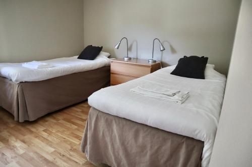 Detta tvåbäddsrum har eget badrum, egen ingång, garderob och uteplats. Här finns 2 sängar.