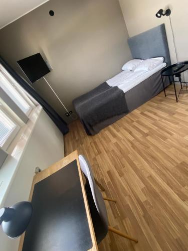 Alla rum på City Hotell har trägolv och eget badrum med dusch. I vissa rum finns ett pentry.